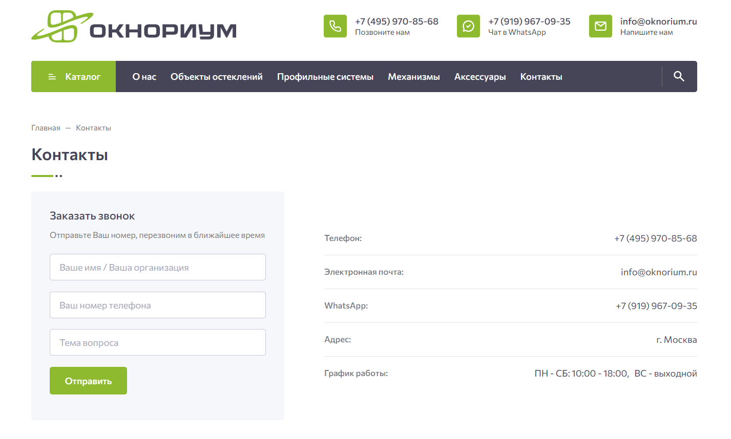 - Сайт — oknorium.ru