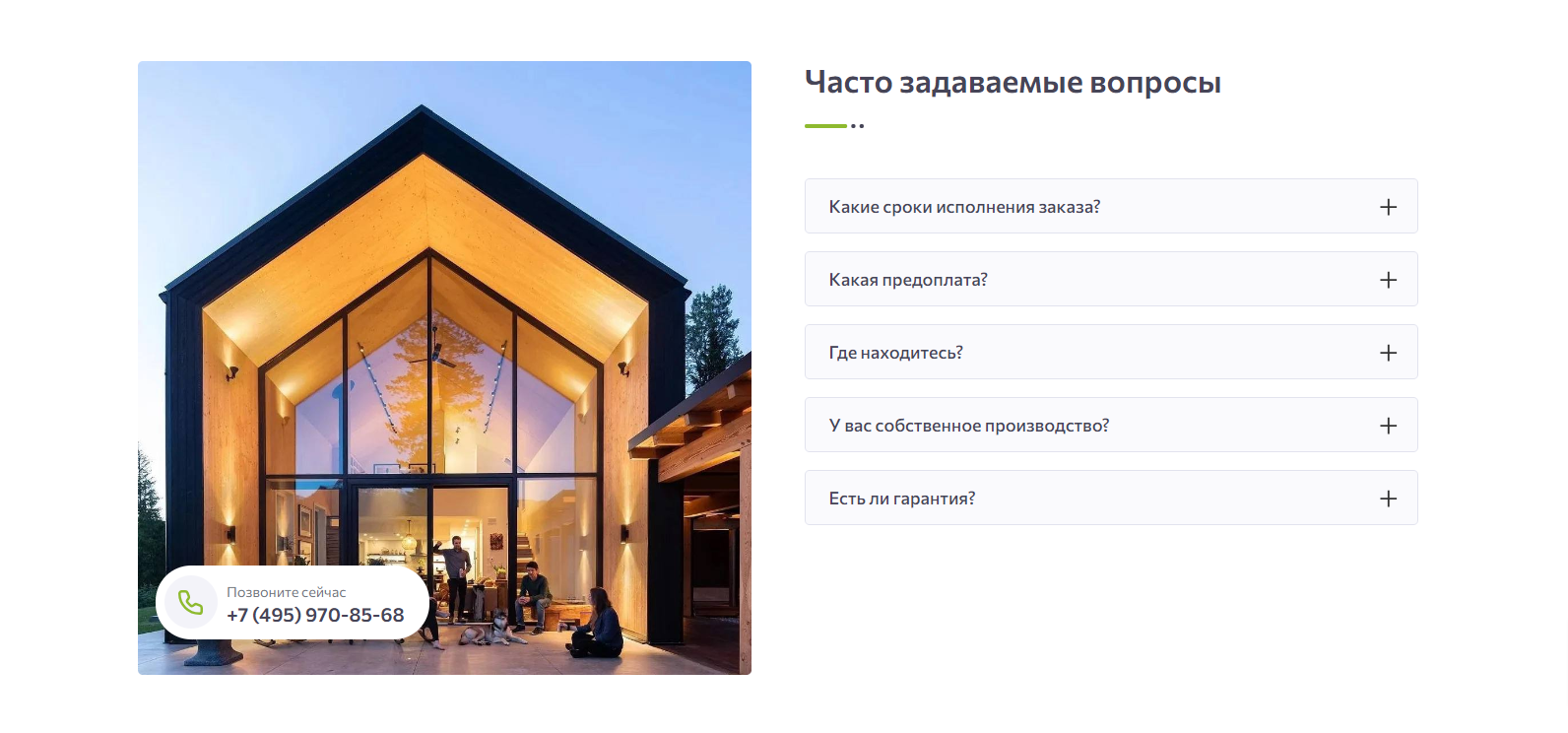 Чтобы ответить на наиболее распространённые вопросы, мы создали и разместили на сайте блок «Часто задаваемые вопросы». Он позволяет пользователям быстро находить нужную информацию и быстрее принимать решение о покупке.