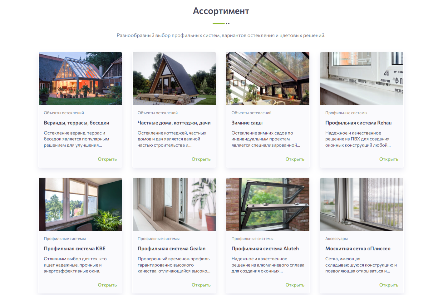 Для более полного представления всех товаров на главной странице сайта также был добавлен более расширенный блок «Ассортимент». Он дает пользователям возможность детально ознакомиться с разнообразием предлагаемой продукции в одном месте.