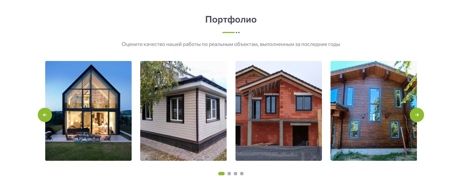 Ниже мы представили раздел «Портфолио» с работами компании. Такое решение позволяет пользователю ознакомится с примерами выполненных работ и усилить лояльность к ней.