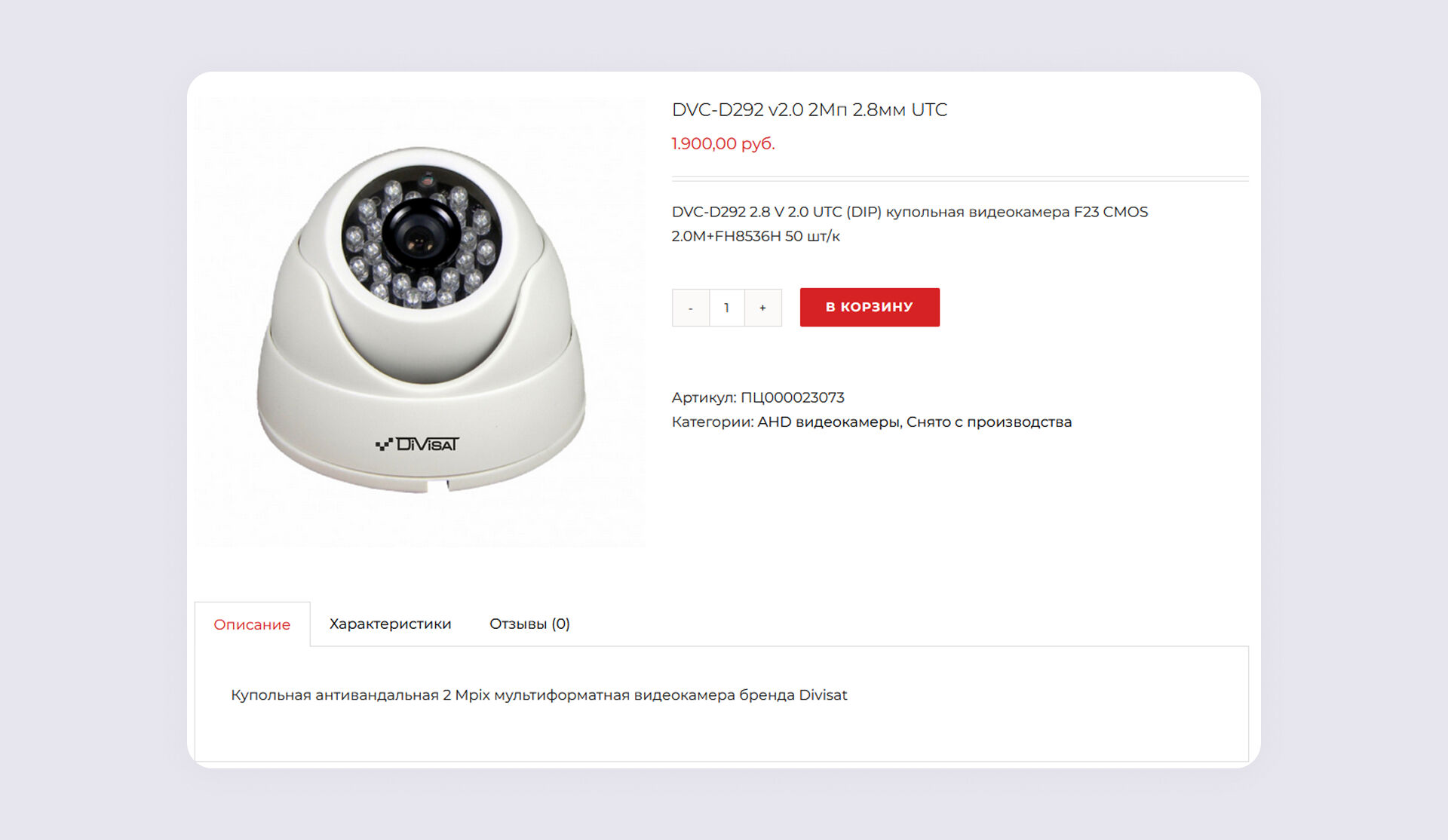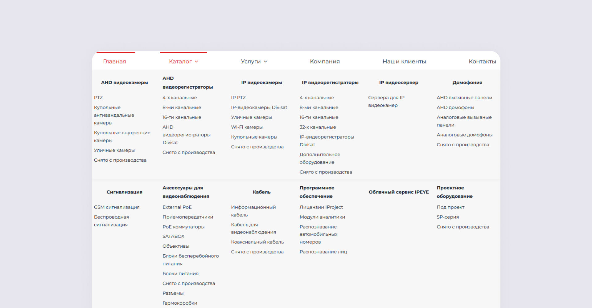 Разработать сайт с подробным каталогом продукции товаров линейки видеонаблюдения и СКУД