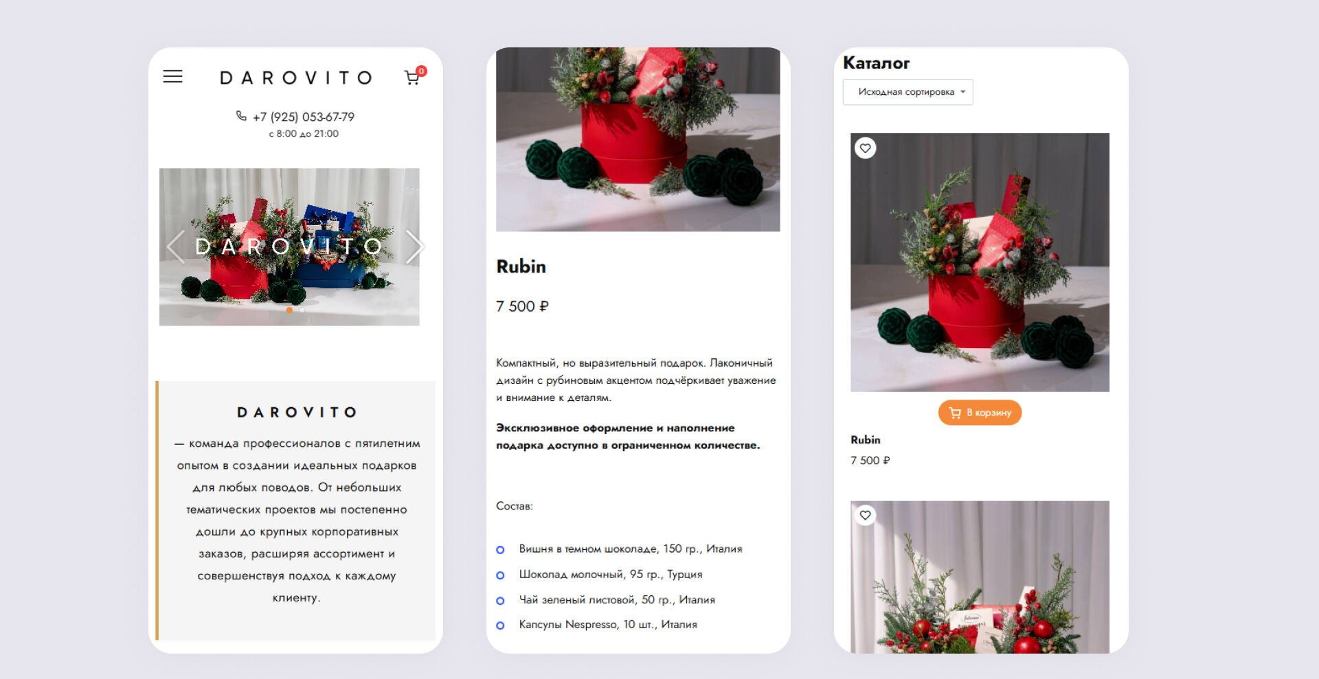 Необходимо разработать интернет-магазин для премиальных подарочных наборов.