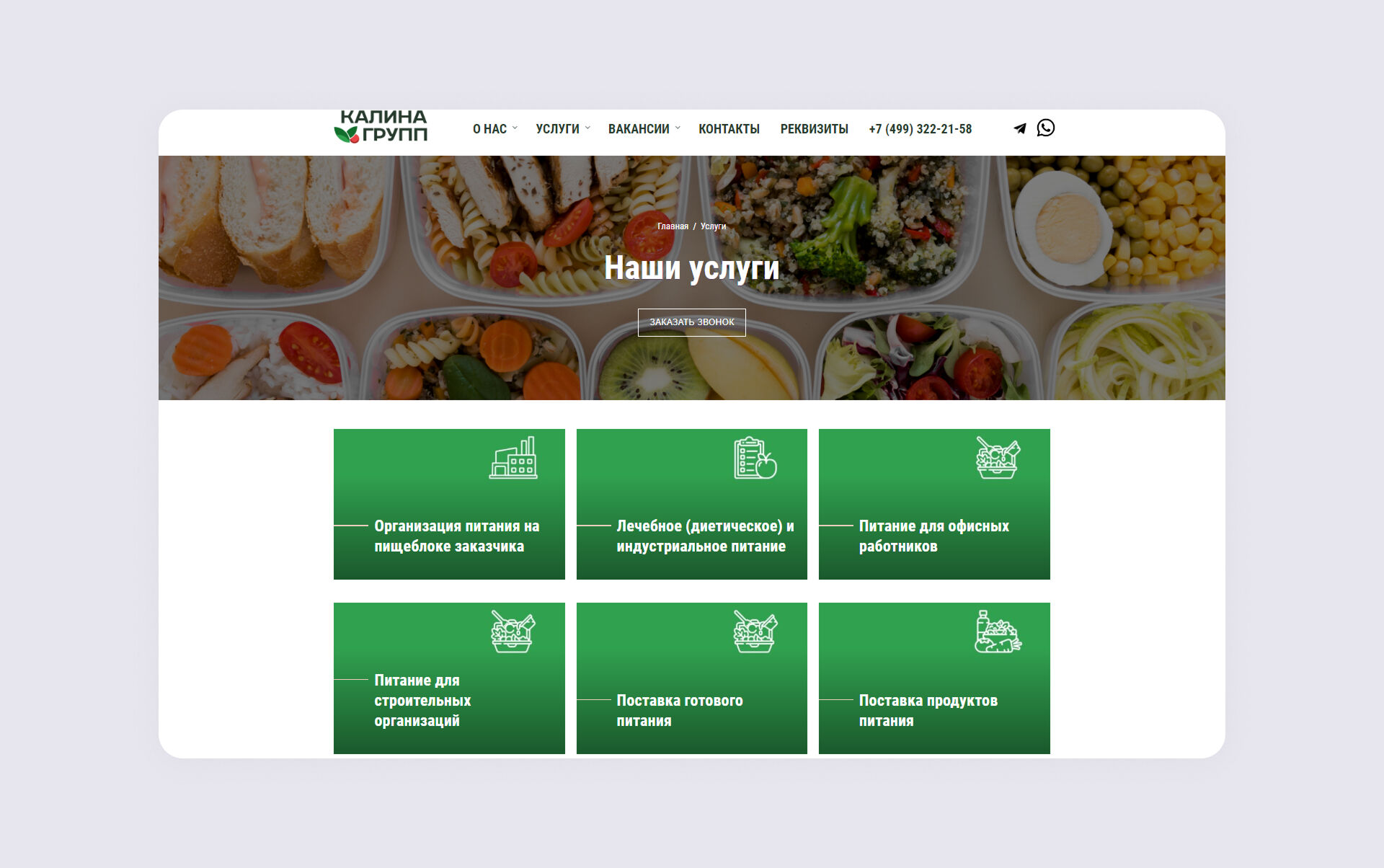 Создать сайт для компании «КАЛИНА ГРУПП», занимающейся поставкой продуктов питания и организацией питания в Москве и Московской области.