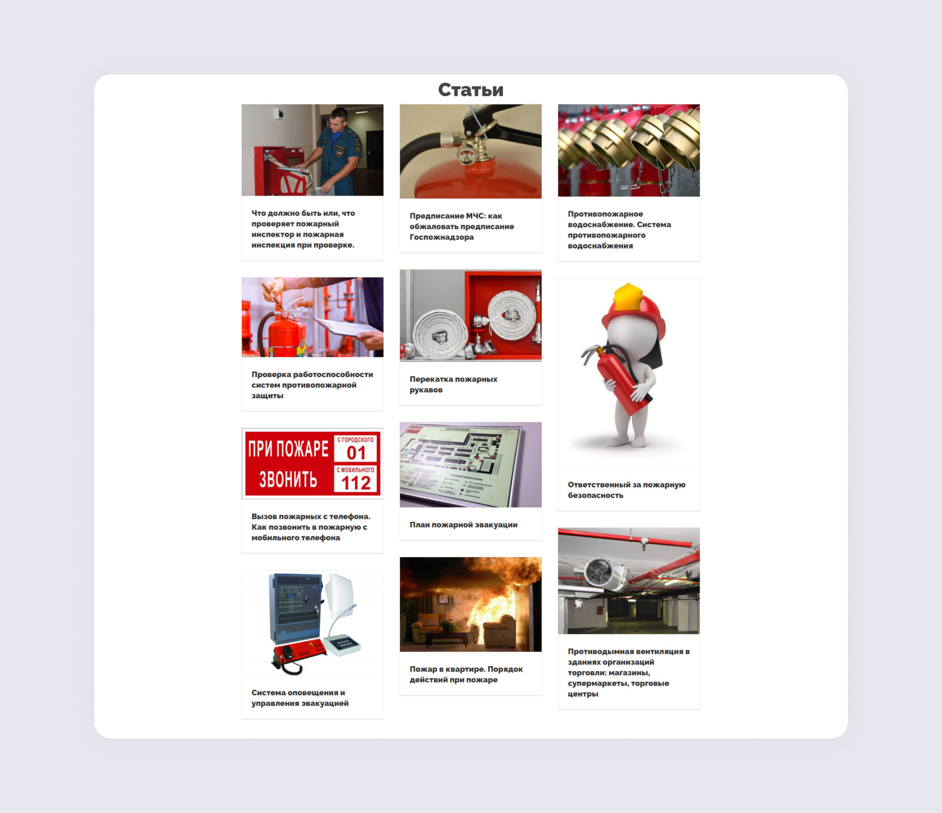 Помимо услуг, на сайте было решено разместить тематические статьи.