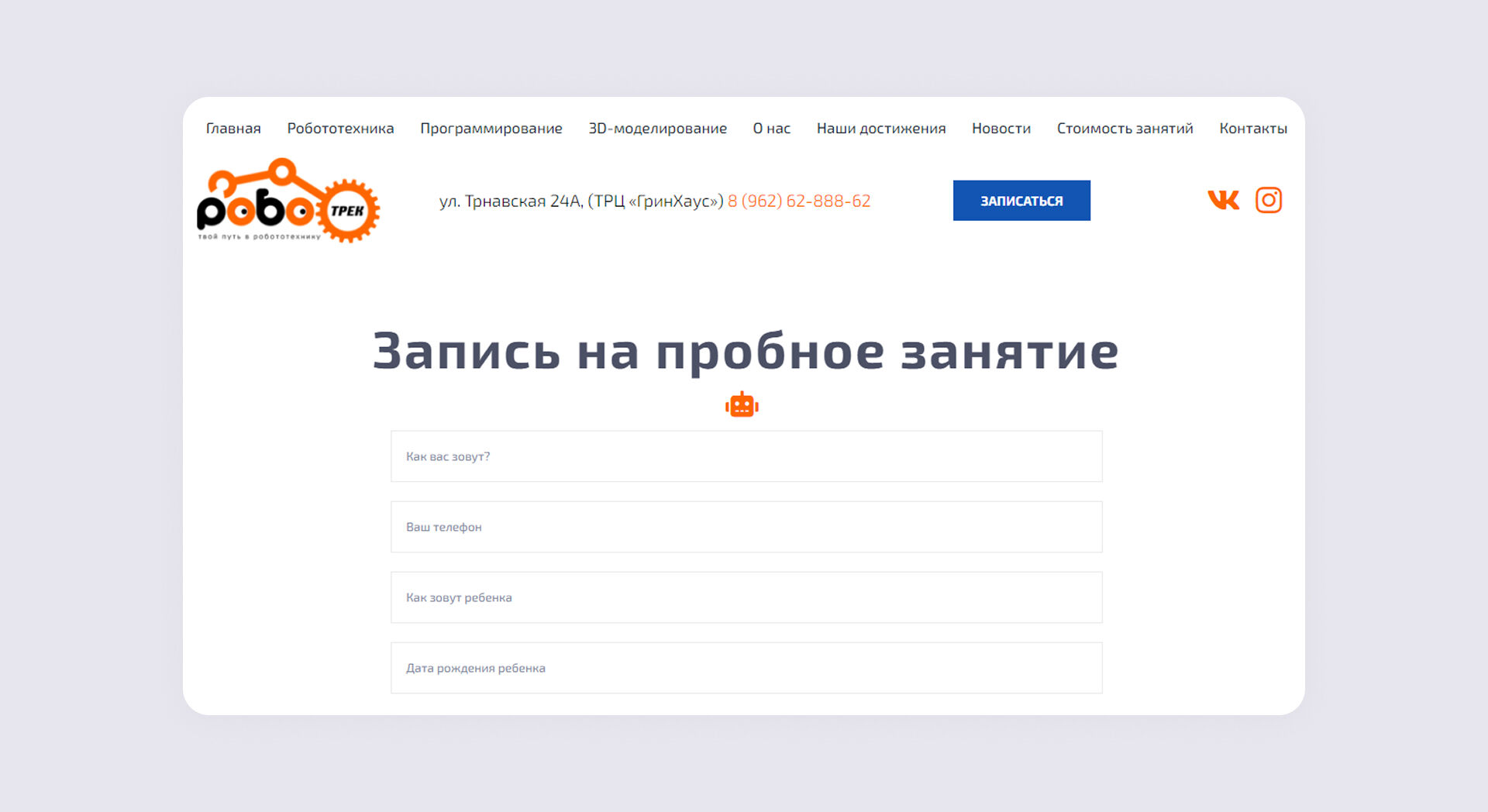 Сделали сайт для бывших соседей по офису и друзей из кружка робототехники — РОБОТРЕК Балаково.