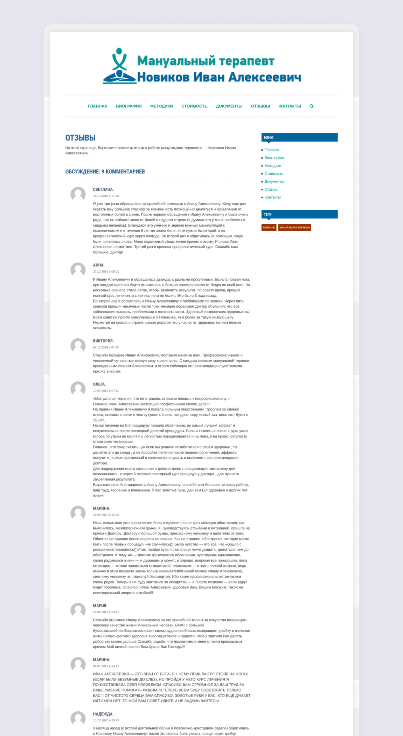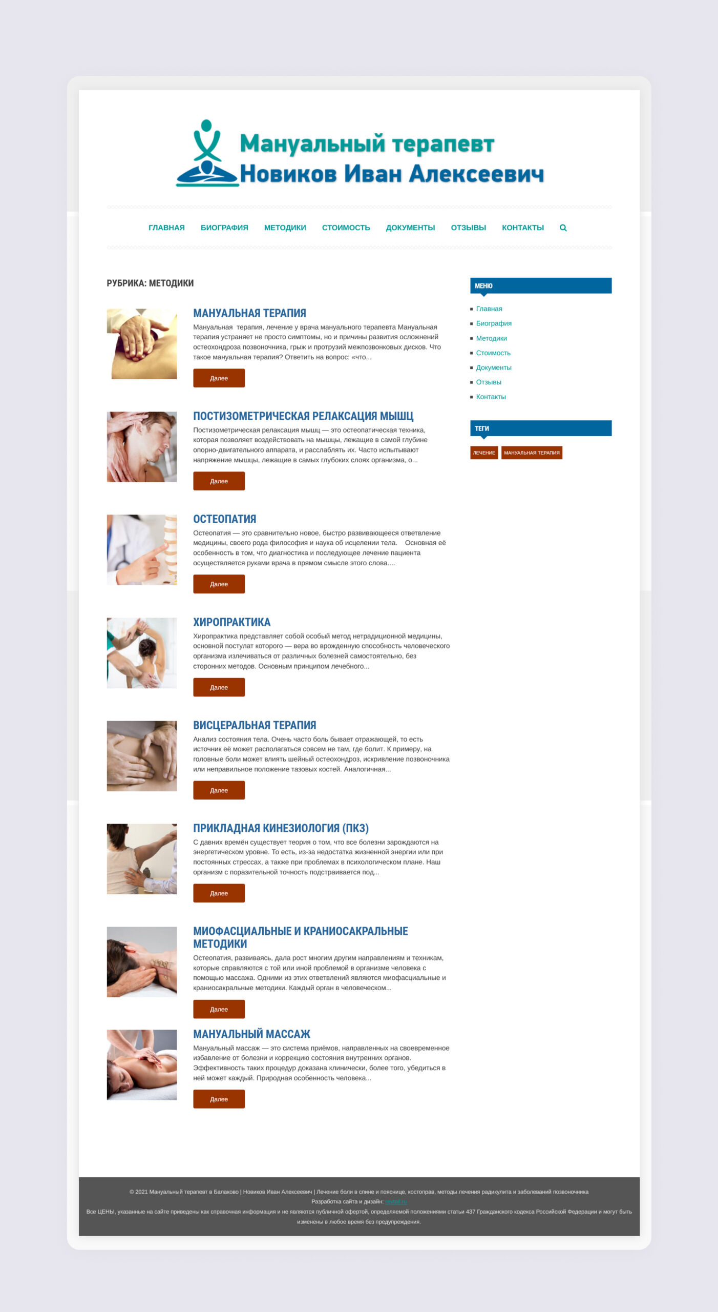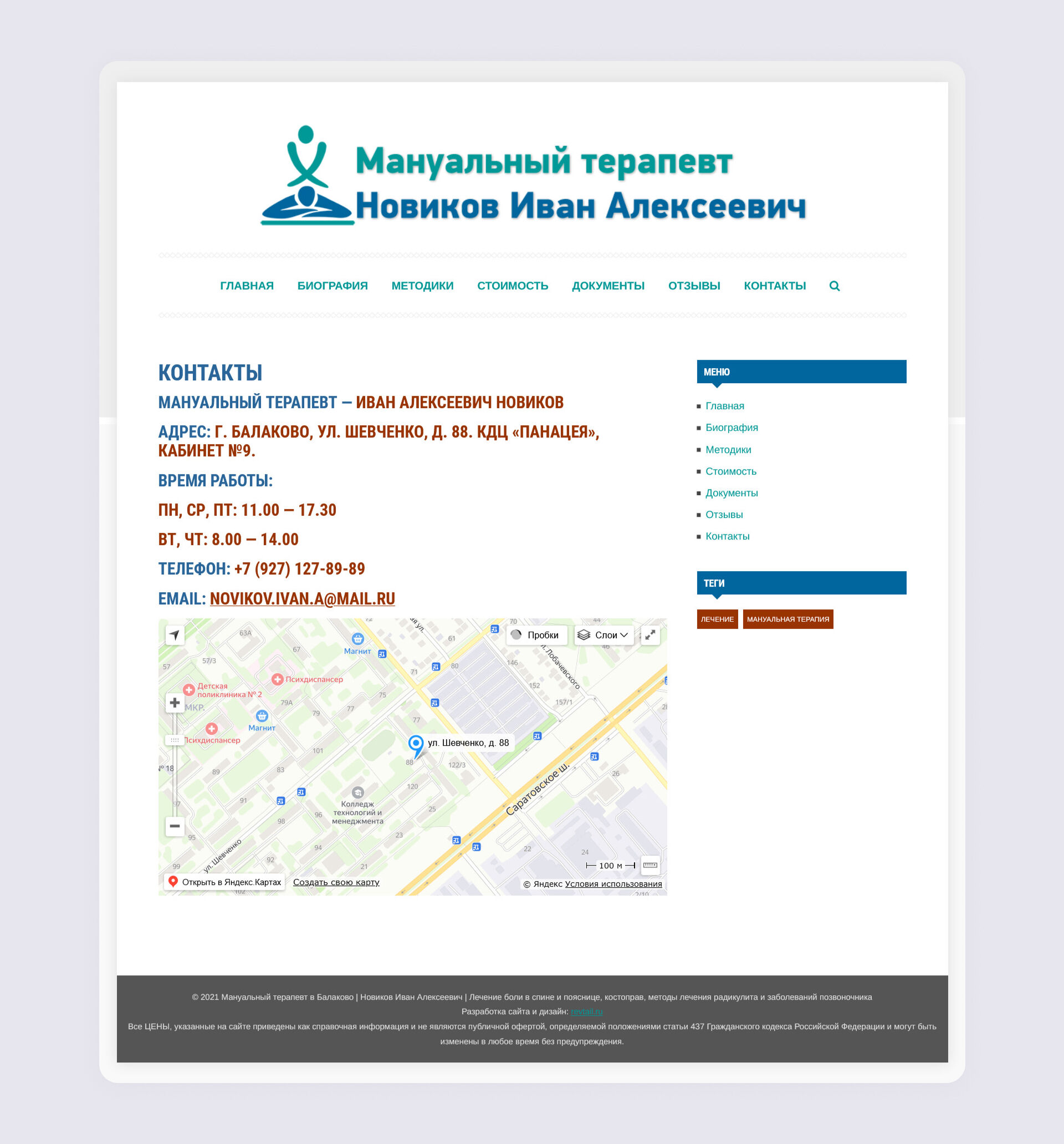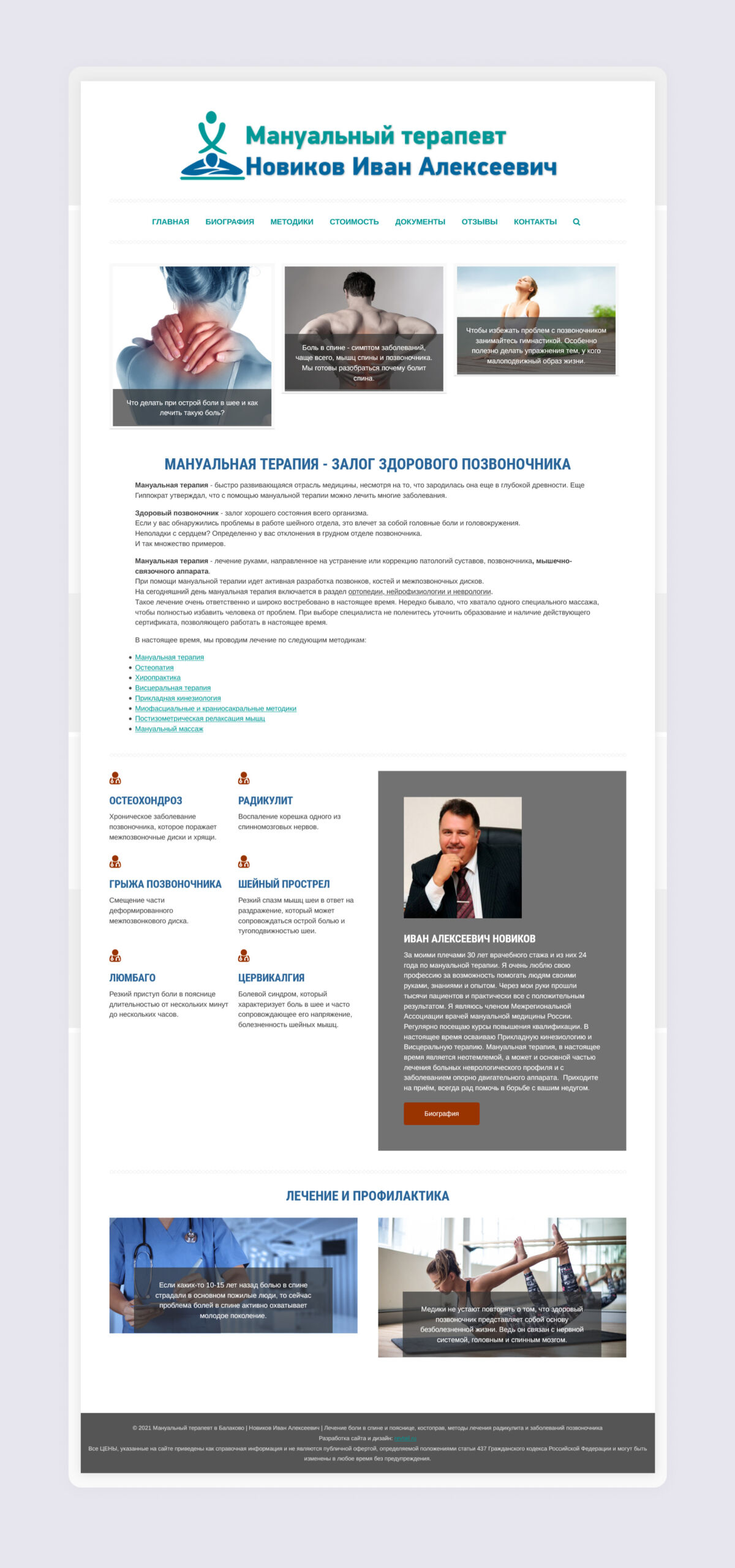 Разработка сайта для мануального терапевта в городе Балаково — Новикова Ивана Алексеевича.