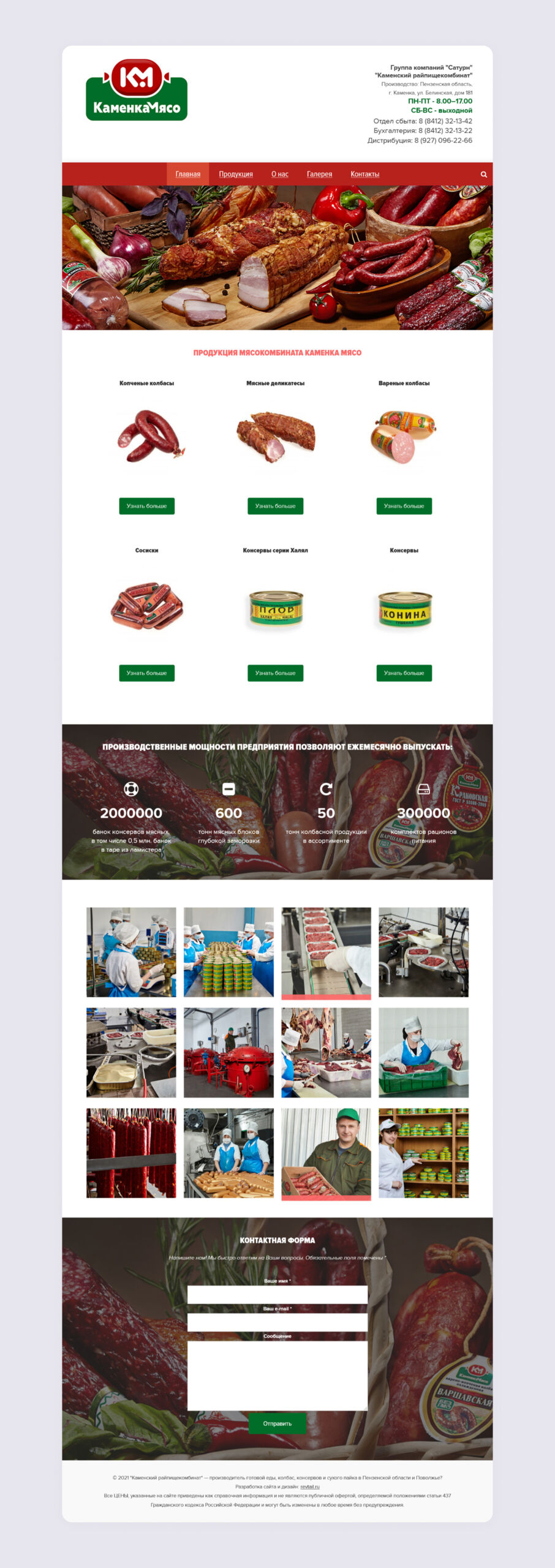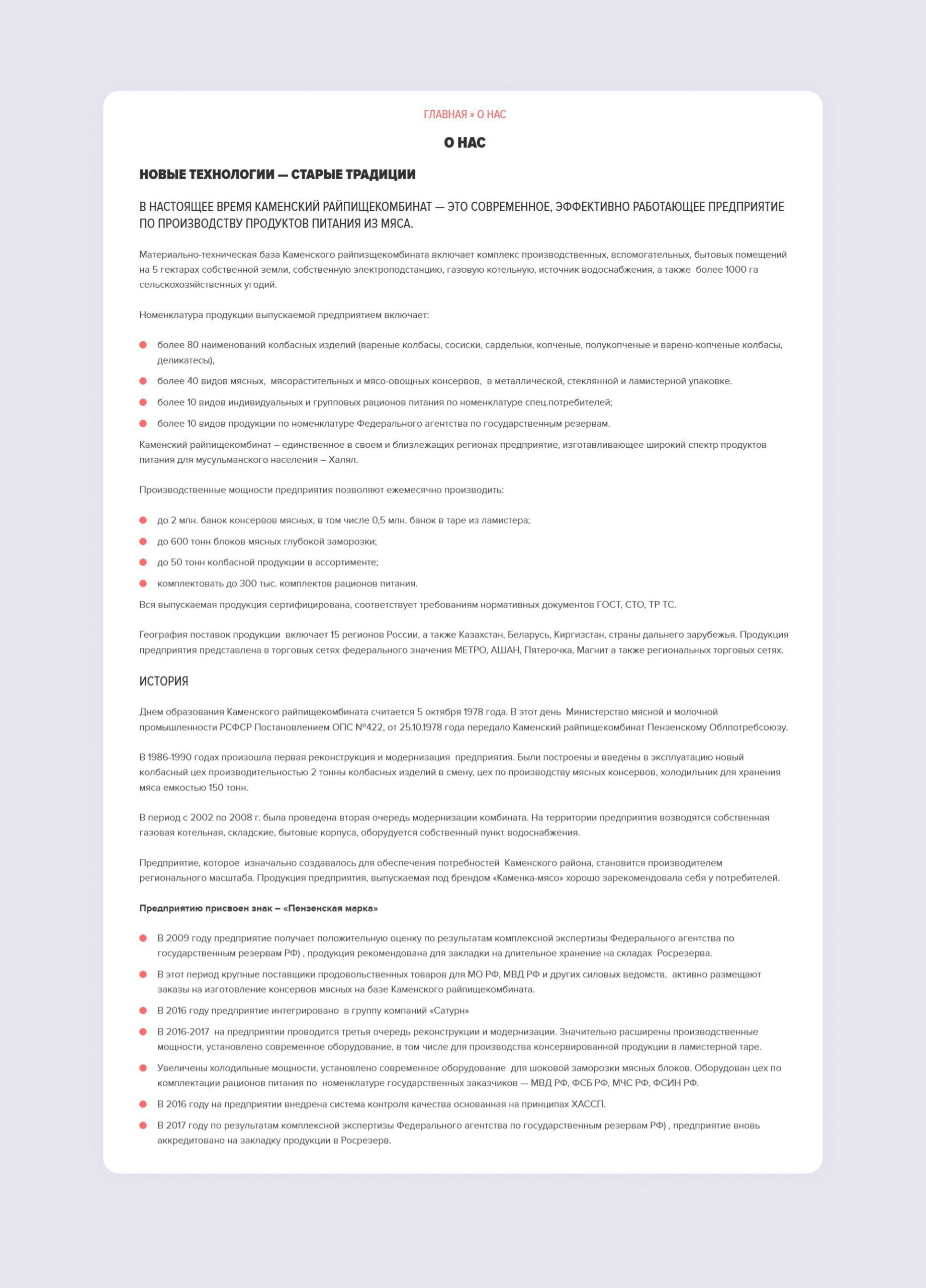 К нам обратился комбинат — производитель готовой еды, колбас, консервов и сухого пайка в Пензенской области и Поволжье — «Каменский райпищекомбинат». Задача, сделать сайт с актуальным каталогом продукции.