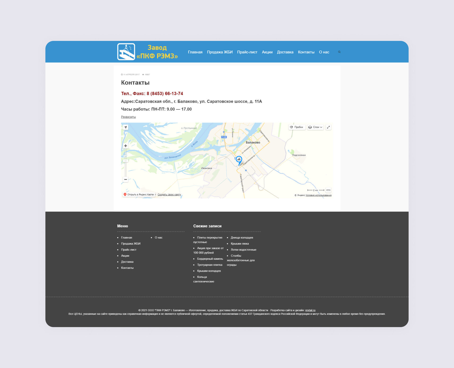 Сделать сайт для компании которая занимается производством железобетонных изделий на производственной площадке в городе Балаково