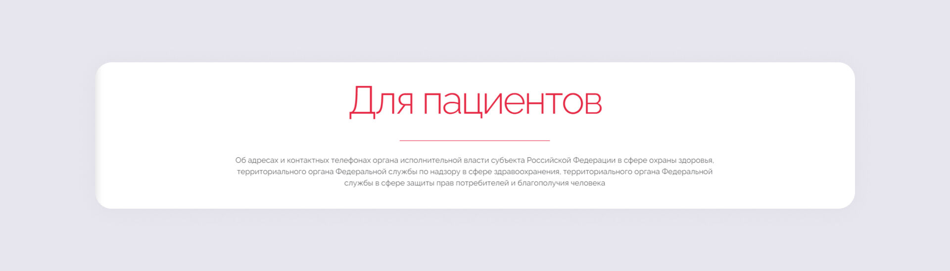 Очень важный момент: сайты медицинских организаций должны соответствовать требованиям САНПИН, иначе за дело берется прокуратура. Мы все эти требования знаем, и разместили всю необходимую дополнительную информацию в разделе ДЛЯ ПАЦИЕНТОВ