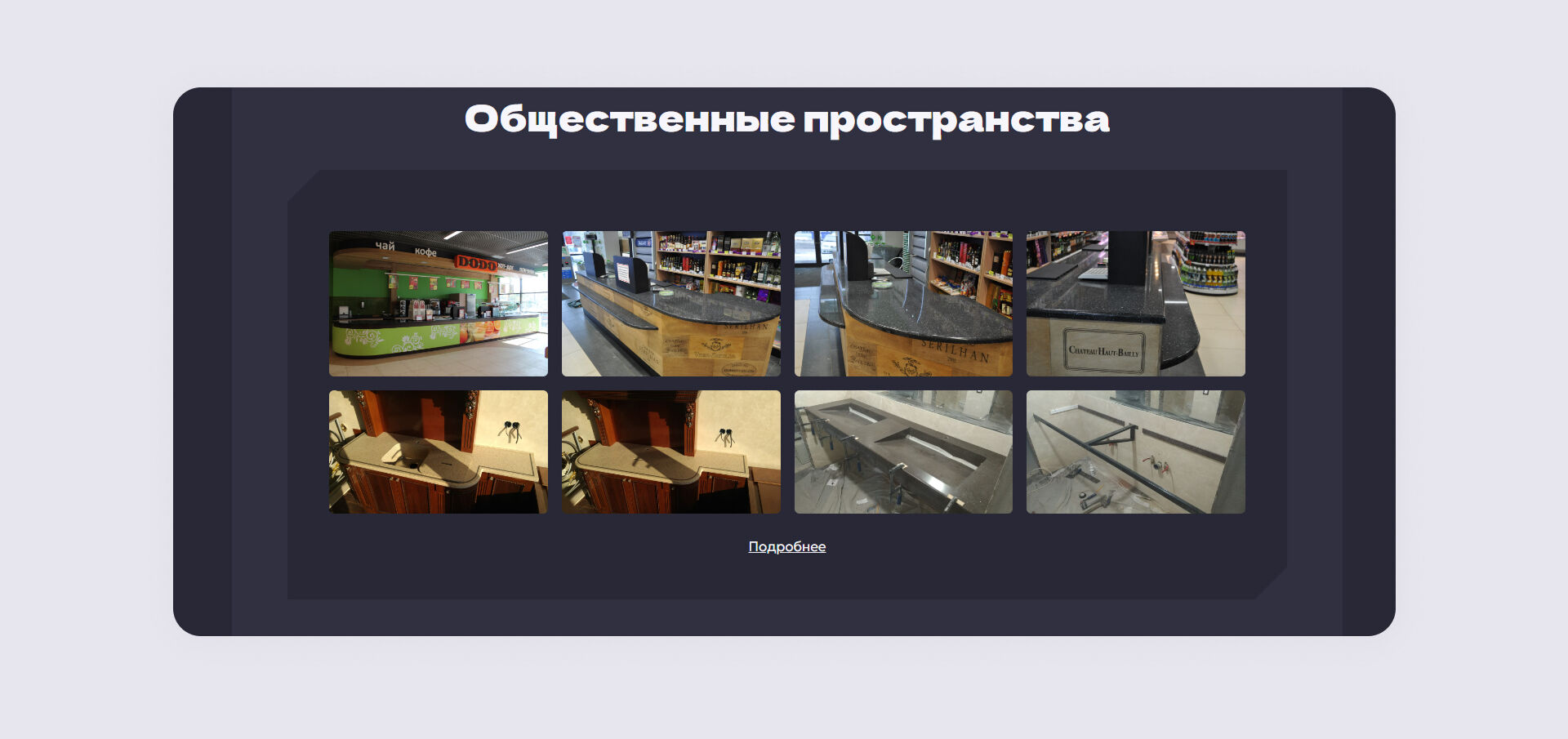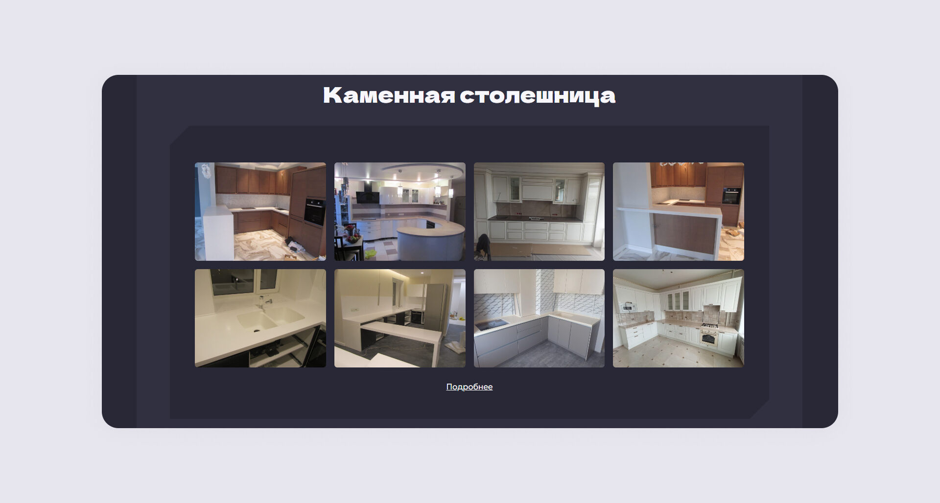 Далее разместили галереи с фотографиями реальных примеров выполненных работ. Это позволило наиболее полно проиллюстрировать разнообразие выполненных и, соответственно. возможных проектов. Галереи разделены на категории, что помогает посетителям легко ориентироваться.