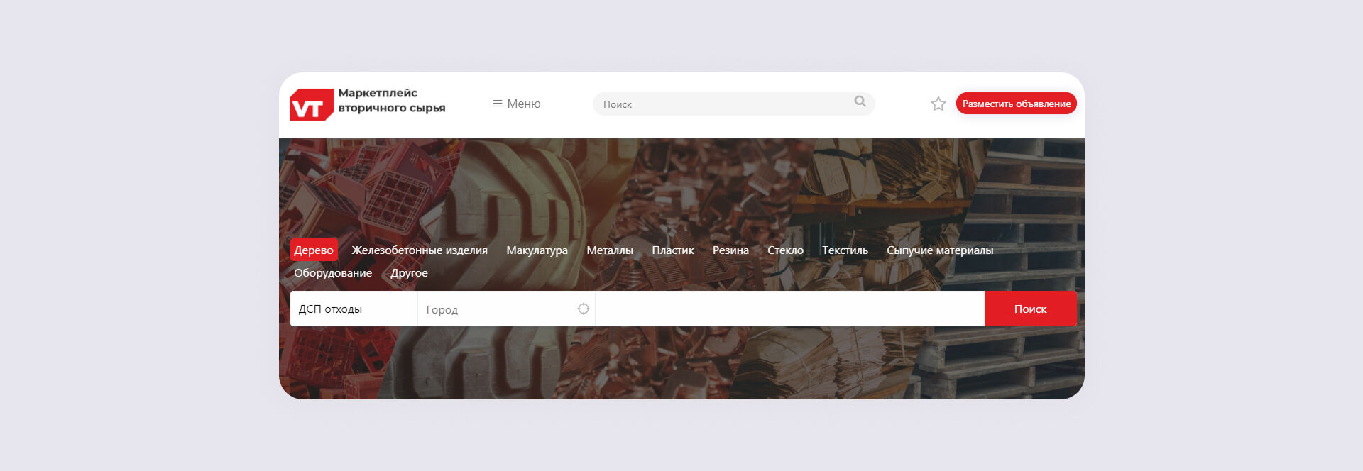 Мы ему нарисовали логотип, и сделали маркетплейс — это такое место где люди сами размещают свои товары к продаже или покупки, в итоге получилось узкоспециализированное авито для вторсырья.