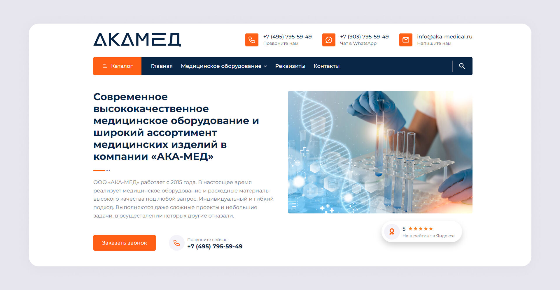 Создать сайт для компании «АКА-МЕД», занимающейся продажей медицинского оборудования и широкого ассортимента медицинских изделий.