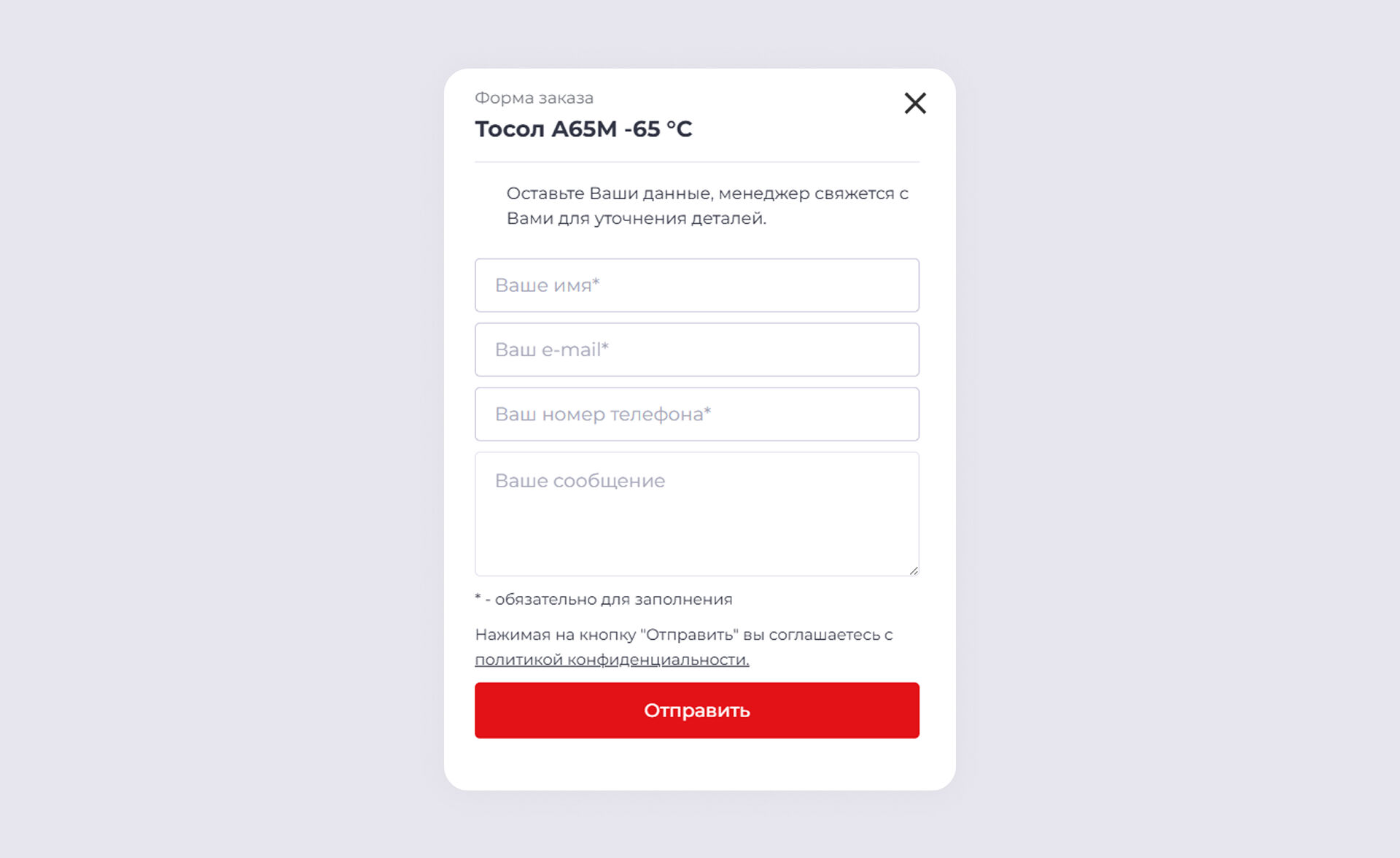 Необходимо разработать сайт-визитку для поставщика моторных масел и специальных жидкостей.